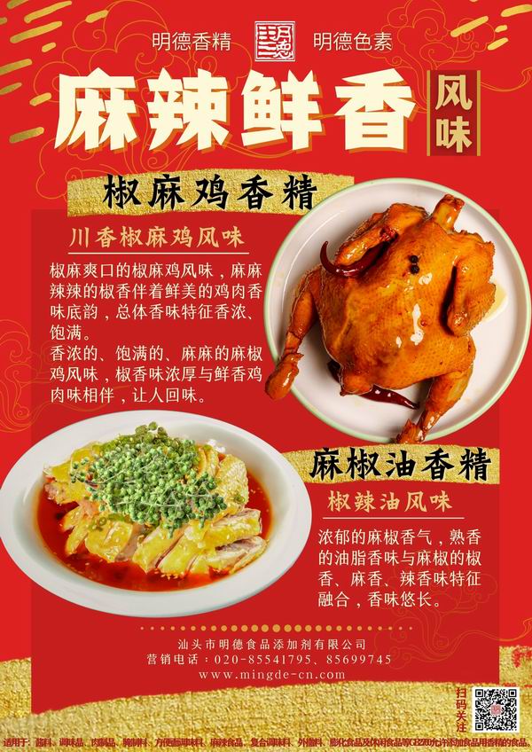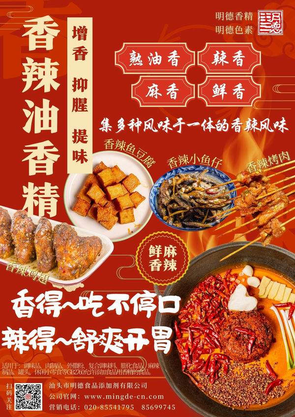 明德食品添加劑 還推出了麻辣鴨脖-辣鹵鴨香精,風(fēng)味香辣鮮香,伴著陣陣香辛料余香,同時(shí)椒辣香、鮮香、肉香融合,香味悠長。